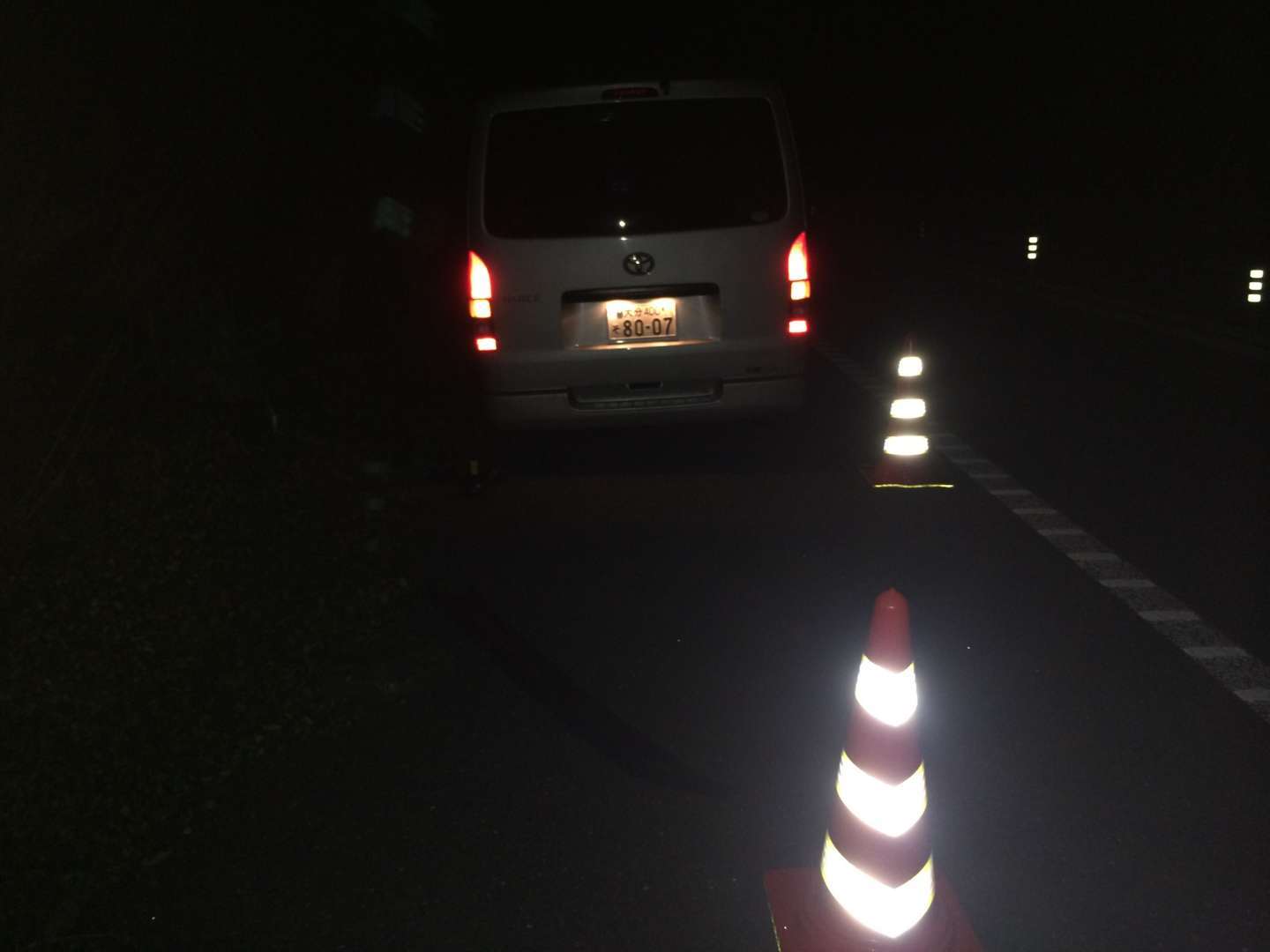 約2カ月ぶりの更新です。今日の朝方、佐伯方面に高速道路を使って定期清掃作業に向かっている途中、リア左タイヤが突然バーストしました(°_°)片側一車線で右に左へ蛇行運転(完全に反対車線を走行)‼︎バイトの神田君は完全に凍りついてた。深夜の時間でなければ完全事故してました。ハイエースと中の道具類も無事でした。(金額の損害を考えるとまた凍り付く…)結局自分達でスペアタイヤに交換する事もできずJAFに助けてもらい、もちろん現場にも間に合わず日程変更していただき本当に散々でした。(お店の方には申し訳ないです。) マジ死ぬかと思った(大汗)
